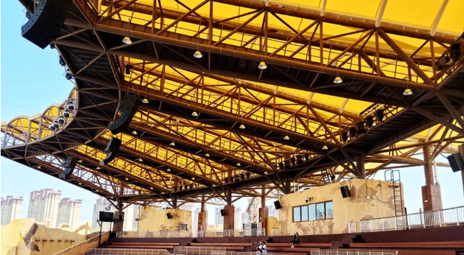 而在半露天式的特技秀劇場中,主擴(kuò)則采用了 JBL VTX 系列產(chǎn)品,考慮到觀眾席的環(huán)形分布,還在觀眾席后側(cè)設(shè)置了8只 JBL AM7215,搭配使用 Crown 功放,保障了聲效的清晰度。