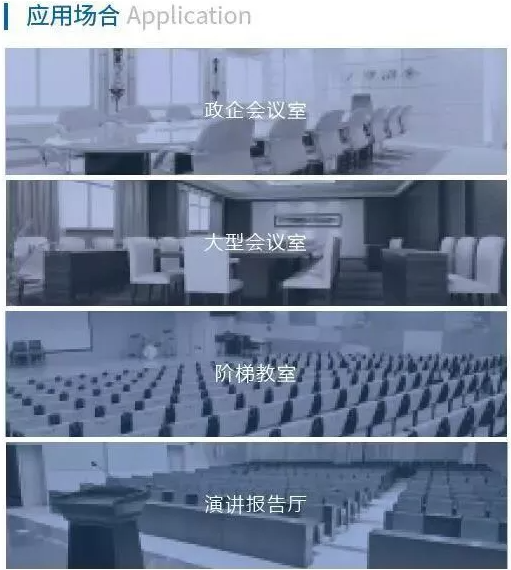 產品應用范圍涵蓋會議室、報告廳、多功能廳、劇場劇院、戶外流動演出、體育場館、電影院等。