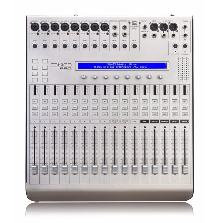 每個(gè)輸入通道8ms延時(shí),具有高通濾波器、高低擱架濾波器、7段參量均衡器、帶側(cè)鏈功能的壓縮器、噪聲門(mén)